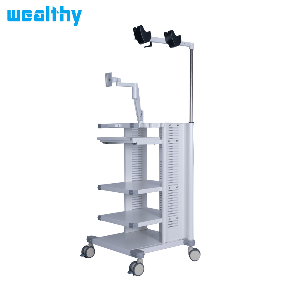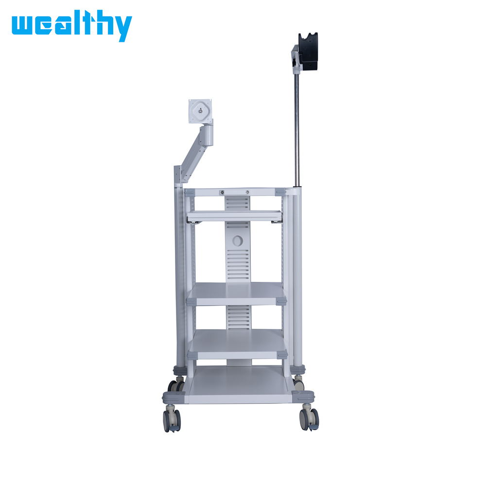 The trolley is used for endoscopic operations to place the various units (camera, lightsource, insufflator, monitor etc.) according to function.