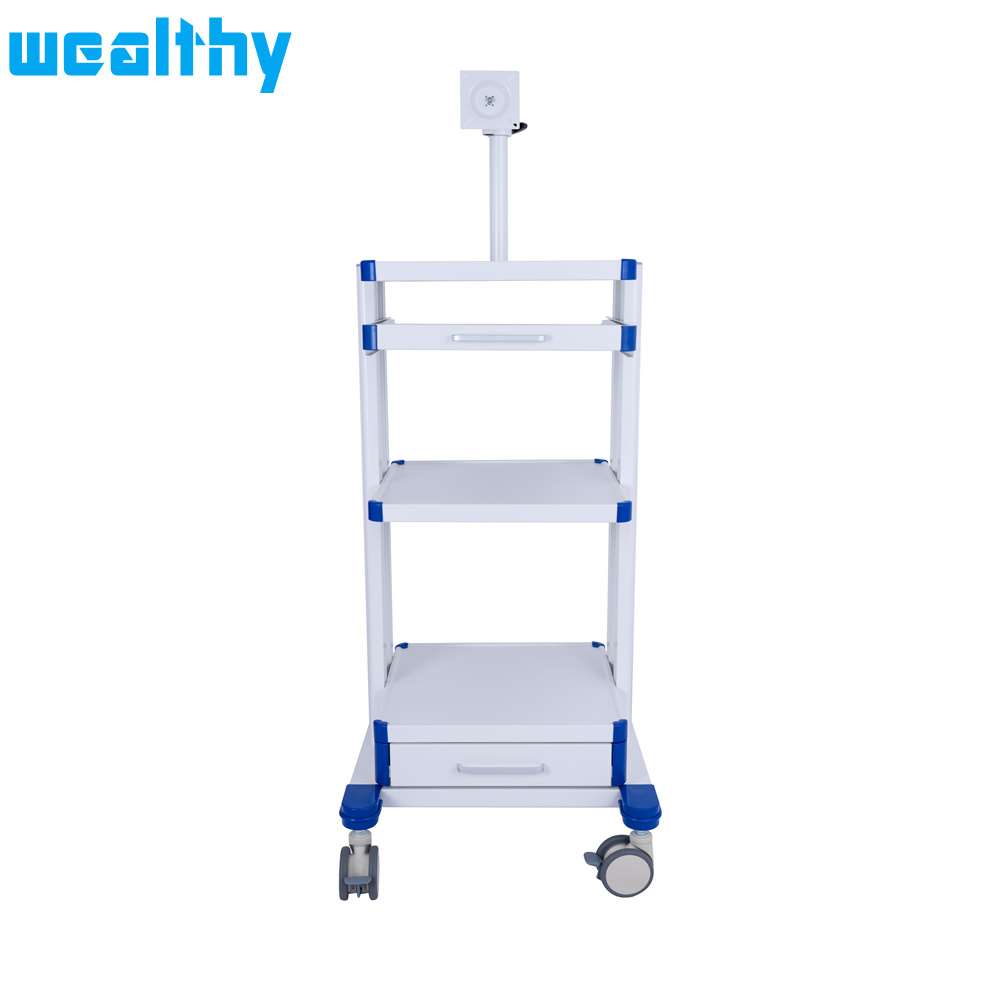 The trolley is used for endoscopic operations to place the various units (camera, lightsource, insufflator, monitor etc.) according to function.